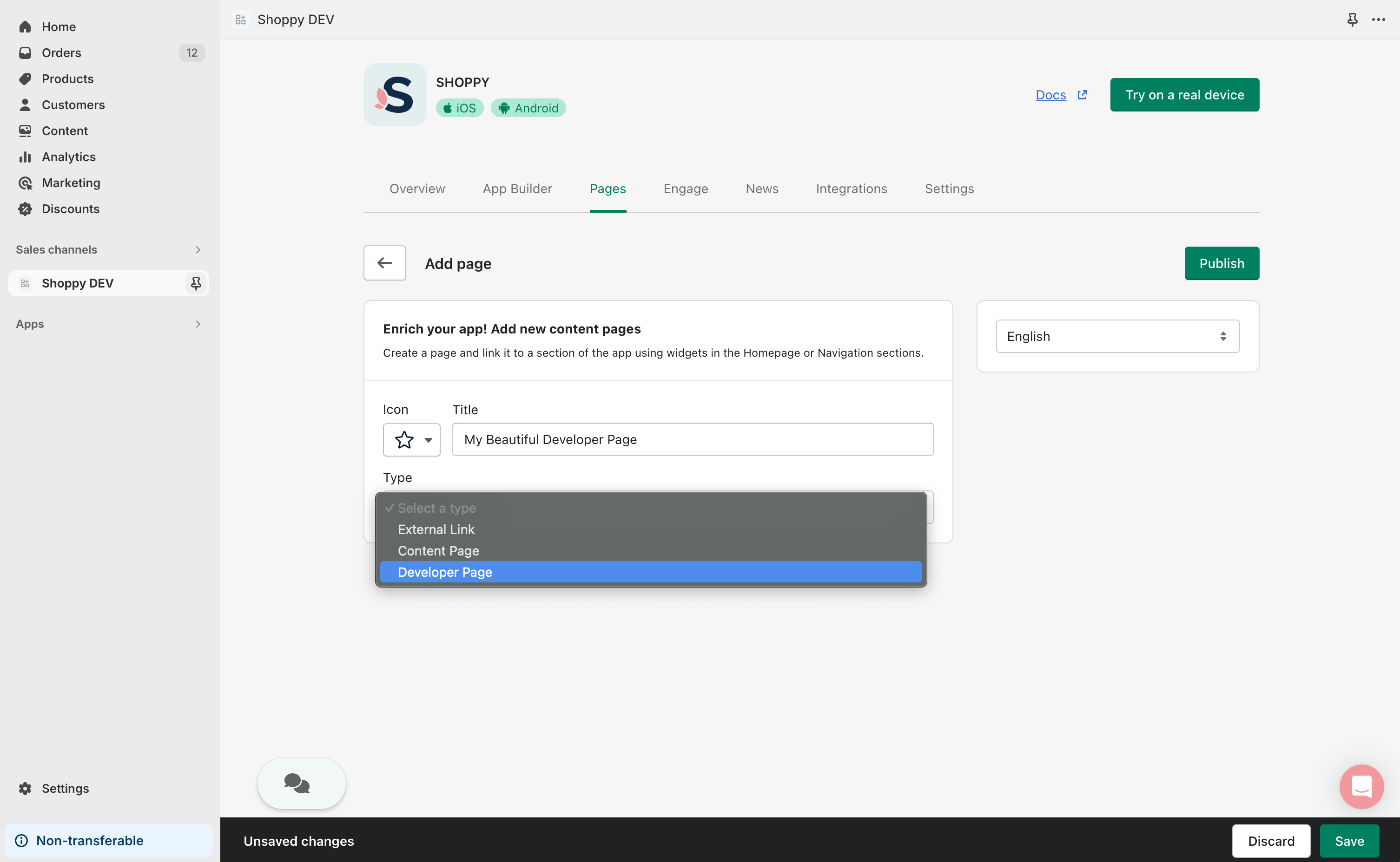 3. Choose an appealing title and icon that represents your Developer Page, like "My Beautiful Developer Page"