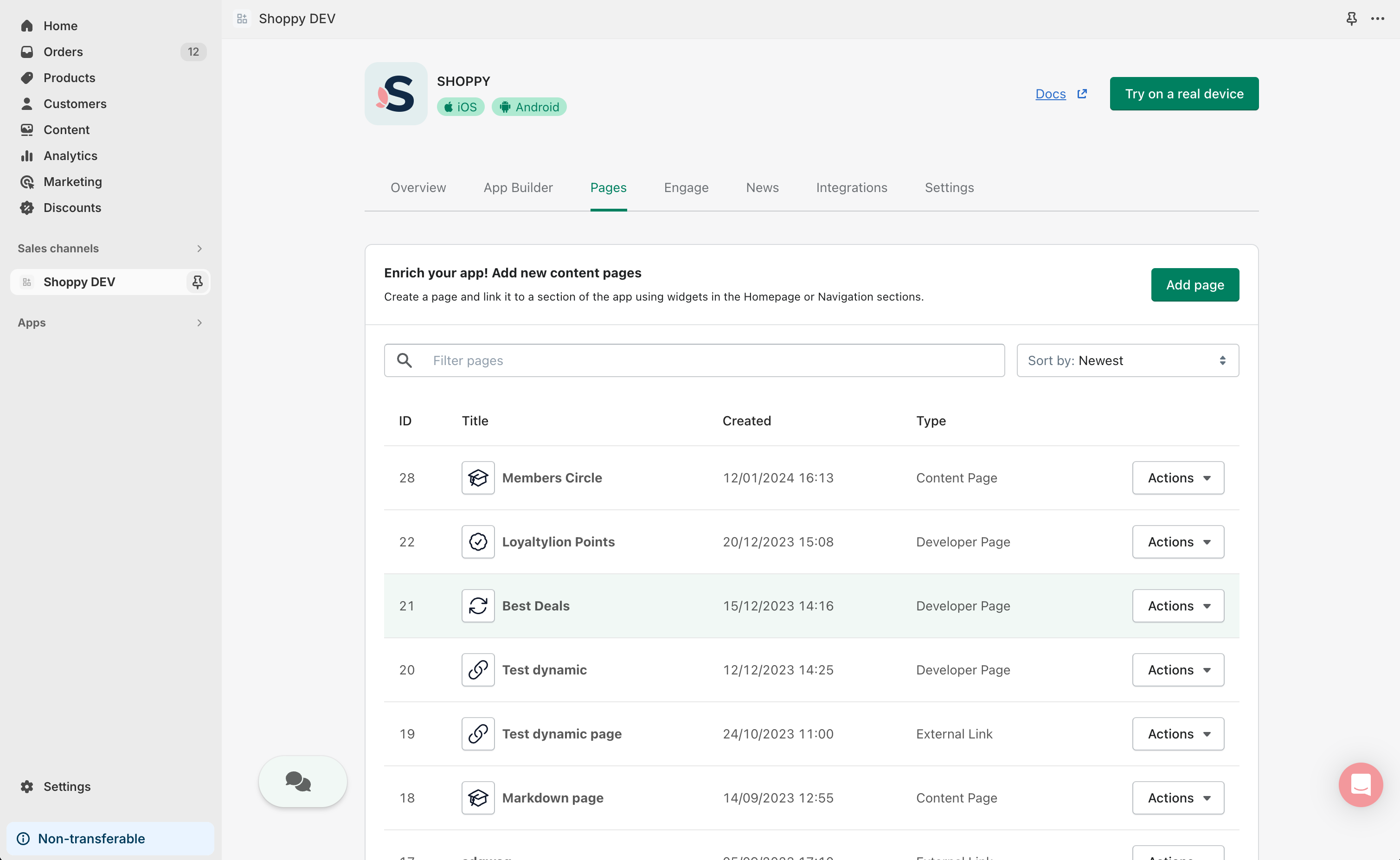 2. Navigate to the 'Pages' section within the Shoppy dashboard and select 'Add page'.